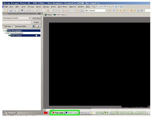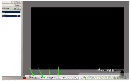 可以看到建好的PCB只有兩個層,Top Layer 和 Bottom Layer。如下圖所示。