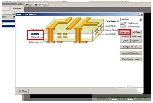 可以看到目前只有兩個層Top Layer 和 Bottom Layer。可以看見右側有Add Layer選項。