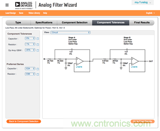 雖然模擬濾波器向導工具按所需特性選擇了最合適的器件,但是找到并使用和建議完全一致的器件可能很難或不切實際。因此,您可以通過元件容差功能靈活選擇電阻和電容容差(圖7)。同時,您還可以查看調整容差對濾波器性能的影響。