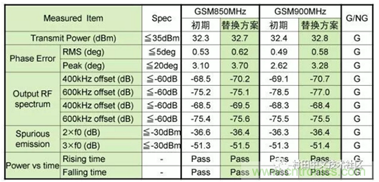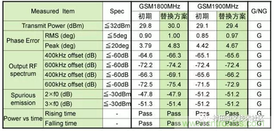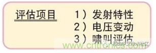 本次置換評估中,對GSM通信時的①發射特性、②蓄電池的電壓變動和③嘯叫進行評估。
