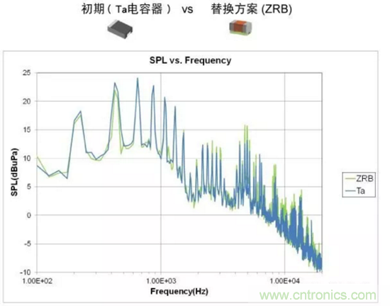 替換方案如下所示。替換產品選擇嘯叫對策用MLCC、ZRB18系列。如下面貼裝照片所示,貼裝面積減少50%。
