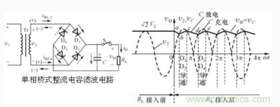 2 .開關S閉合,即為電容濾波電阻負載,當變壓器付邊電壓大于電容上電壓時
