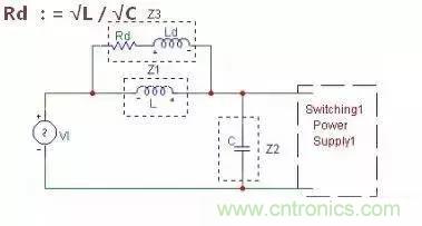 如圖:在電感上并聯(lián)一個電阻與電感串聯(lián)的電路,這稱為串聯(lián)阻尼法,效果與并聯(lián)阻尼相同,不足之處是由于在原電感上并聯(lián)電阻電感后對高頻干擾信號的衰減差一點,這是顯而易見的。事實上大部分的實際應用中Ld 都被省略了,僅僅在電感上并聯(lián)一個電阻,這個電阻稱為阻尼電阻,目的與前述一樣防止在截止頻率處把干擾信號放大,實際使用中阻尼效果還是不錯的。