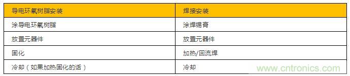 導電環氧樹脂安裝與焊接安裝在生產流程上很相似。