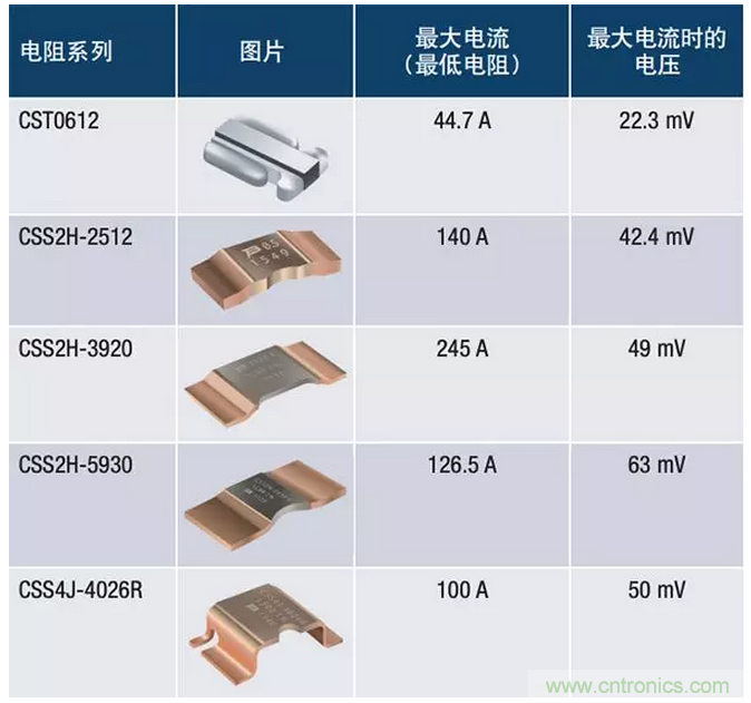 表2:最大電流和Bourns電流檢測電阻上的壓降