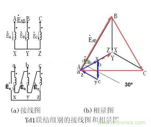 2、用相電壓矢量圖來識別Y/Δ 接法的聯(lián)接組別