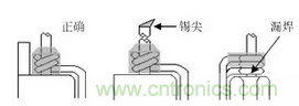 3)不可燒壞膠帶,三層絕緣線須先脫皮后鍍錫;
