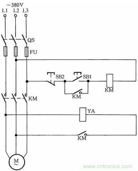 圖中SB2為停止按鈕,在停止時,按動SB2的時間要長一點。否則,手松開按鈕后,接觸器又吸合,使電動機繼續(xù)運行。這是因為電源電壓雖被切斷,但由于慣性的作用,電動機轉(zhuǎn)子仍然轉(zhuǎn)動,其定子繞組會產(chǎn)生感應(yīng)電動勢,一旦停止按鈕很快復(fù)位,感應(yīng)電動勢直接加在接觸器線圈上,使其再次吸合,電動機繼續(xù)運轉(zhuǎn)。
