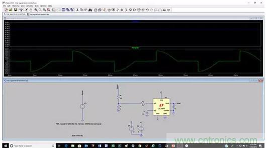 圖5: LTC1966仿真,用于測量開關模式電源的開關FET電流波形的RMS值。(圖片來源:Digi-Key Electronics)