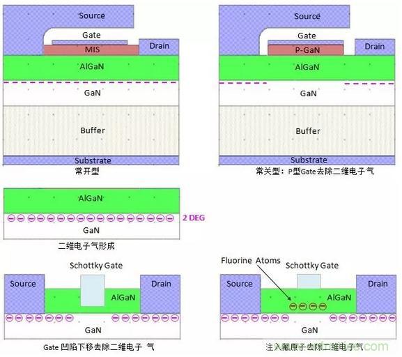 P型Gate產生正電荷,從而去除Gate下方GaN層中的二維電子氣,這也是目前商業化產品常用一種方法。