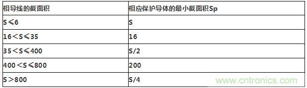 保護導體(PE)的截面積不應小于下表給出值