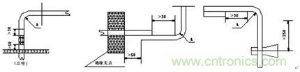 (6)與電器元件搭接的母排,應避免銳角彎折,制作彎曲角度一般不小于90度,見下圖。