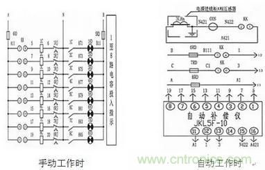 手動工作時,轉換開關KK從kk21-22開始每轉過一個位置多接通一個LED燈,表示1—8個電容器依次進入使用狀態;自動接通時,轉換開關KK如在kk1-2位置停下,那么停下的位置,其余均接通。(如下圖)