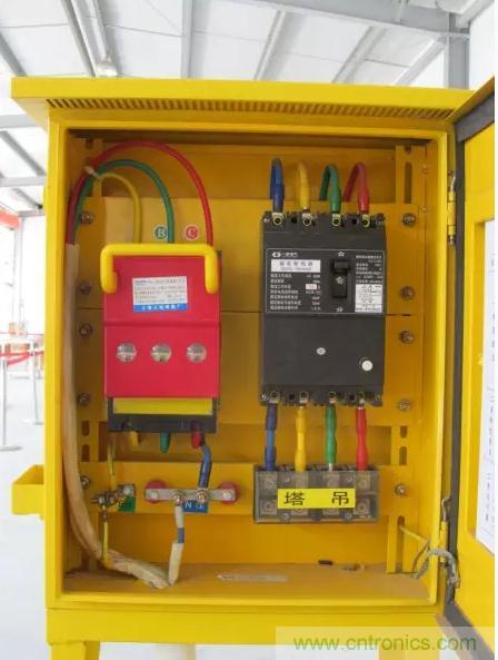 5、總配電箱的電器具備電源隔離,正常接通與分斷電路,以及短路、過載、漏電保護功能。(JGJ46-2005第8.2.2條)