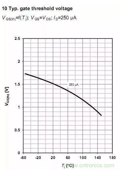 相信這個(gè)值大家都熟悉,但是Vgs(th)是負(fù)溫度系數(shù)有多少人知道,你知道嗎?(下面兩圖分別來(lái)自BSC010NE2LS和IPP075N15N3 G datasheet.)