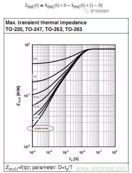 1). 當(dāng)占空比D不在ZthJC曲線中時(shí):(其中,SthJC(t)是single pulse對(duì)應(yīng)的瞬態(tài)熱阻)