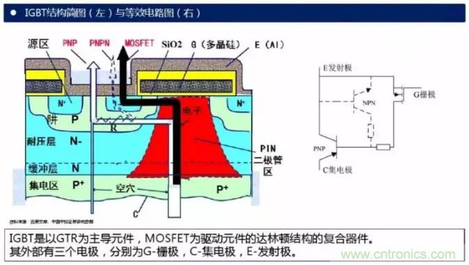 IGBT是以GTR為主導元件,MOSFET為驅動元件的達林頓結構的復合器件。其外部有三個電極,分別為G-柵極,C-集電極,E-發射極。
