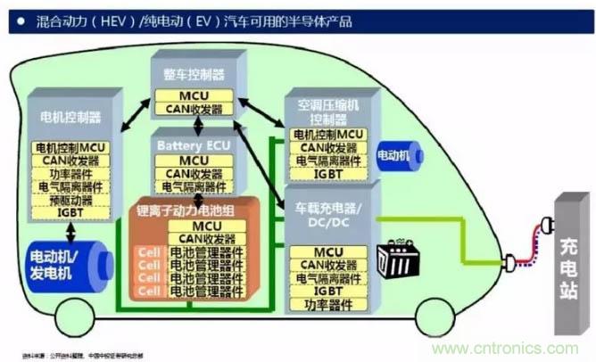 IGBT模塊在電動汽車中發揮著至關重要的作用,是電動汽車及充電樁等設備的核心技術部件。IGBT模塊占電動汽車成本將近10%,占充電樁成本約20%。IGBT主要應用于電動汽車領域中以下幾個方面:
