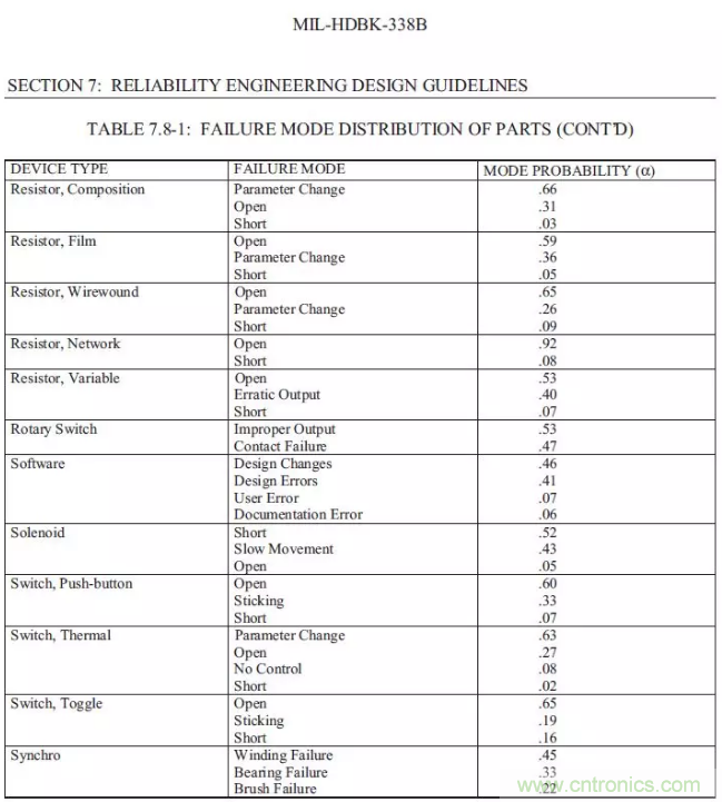 以下數字僅供參考,本身MIL-HDBK-338B是一份指導書性質的,所有的數字僅僅具有參考意義。