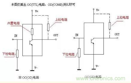 當TTL電路驅動CMOS電路時,如果TTL電路輸出的高電平低于CMOS電路的最低高電平,這時就需要在TTL的輸出端接上拉電阻,以提高輸出高電平的值;OC門電路必須加上拉電阻,以提高輸出的高電平值。