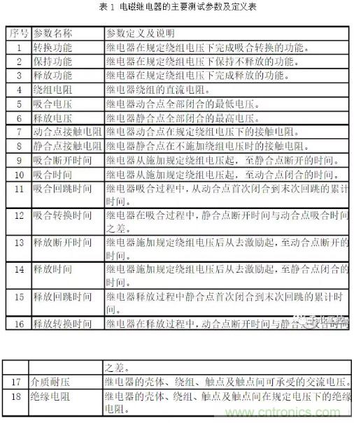 為保證繼電器的質(zhì)量,表1所列參數(shù)都應(yīng)嚴(yán)格進(jìn)行測試,但其中有些參數(shù)的測試特別需要引起我們的注意。