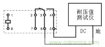 介質(zhì)耐壓(俗稱打高壓)是考核繼電器的殼體、繞阻、觸點(diǎn)及觸點(diǎn)間在規(guī)定的時(shí)間內(nèi)承受規(guī)定交流電壓的能力。而絕緣電阻是考核繼電器的殼體、繞阻、觸點(diǎn)及觸點(diǎn)間在效加規(guī)定直流電壓的條件下體現(xiàn)出來的絕緣電阻。國軍標(biāo)規(guī)定的試驗(yàn)電壓施加點(diǎn)見表4。