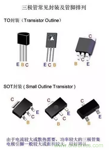 當(dāng)前,塑料封裝是三極管的主流封裝形式,其中“TO”和“SOT”形式封裝最為常見(jiàn)。