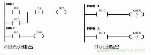 (2)梯形圖中同一編號的“繼電器線圈”只能出現一次,通常不能出現,但是它的觸點可以無限次地重復使用。