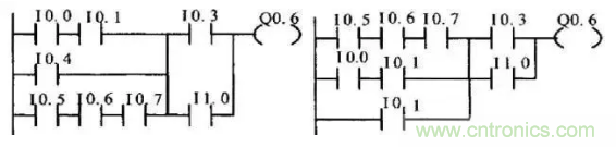 (3)幾個串聯支路相并聯,應將觸點多的支路安排在上面;幾個并聯回路的串聯,應將并聯支路數多的安排在左面。按此規則編制的梯形圖可減少用戶程序步數,縮短程序掃描時間。
