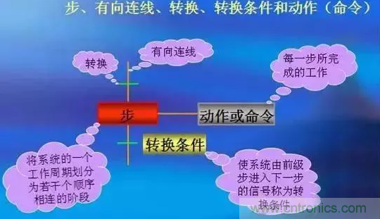 在控制系統的一個工作周期中,各依次順序相連的工作階段,稱為步或工步,用矩形框和文字(或數字)表示。步有兩種狀態:“活動步、“非活動步” 、“初始步”:一系列活動步決定控制過程的狀態。對應控制過程開始階段的步,每一個功能表圖至少有一個初始步,初始步用雙線矩形框表示。