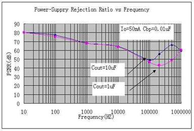 Powersupplyripplerejectionratio(PSRR)是反應LDO輸出對輸入紋波抑制的一個交流參數,輸出和輸入的頻率是一樣的。和噪聲(Nosie)不同,噪聲一般為在10Hz至100kHz頻率范圍內一定輸入電壓下其輸出噪聲電壓的均方值,PSRR的單位是dB。