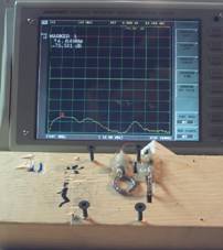 如圖2所示,不論是選擇加工還是購買環(huán)天線,兩個環(huán)天線都必須被小心地放置在相互垂直的位置上,以便獲得兩天線之間的最小耦合;而用于支撐測試裝置的平臺則可以簡單的用木頭和塑料來實現(xiàn)。如前所述,測試裝置中的一個探頭會被連接到RF掃頻源,而另一個探頭則會被連接到掃頻接收機上。如果測試試驗室內(nèi)裝備有矢量網(wǎng)絡(luò)分析儀,那么只要其RF信號源和接收端口之間的隔離度大于70dB,則綜合了頻譜分析儀功能和掃頻信號源功能的網(wǎng)絡(luò)分析儀就能很好的完成本項測試任務(wù)。另外,測試過程中環(huán)天線必須被固定在介質(zhì)材料上,例如木頭和塑料。基本的測試裝置并不復(fù)雜,通過在木塊上插入螺絲釘就可以得到一個如圖2所示的簡單的測試裝置。