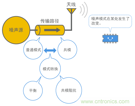 這可以理解為,當噪聲傳輸路徑中電流出現輕微不平衡時,成分以共模的形式出現。