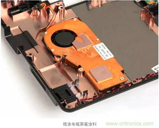 (2)在整個電子設(shè)備外殼就具有高電磁波發(fā)射能力的電路和器件周圍,添加電磁波屏蔽罩、粘貼金屬箔、噴涂導(dǎo)電涂料、鍍一層導(dǎo)電金屬層、增加電磁波吸收材料。