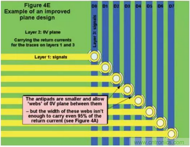 11、關鍵信號線走線不要跨分區走線,如一定要跨分區走線,則在走線附近采用橋接方式,使信號形成完整回路。