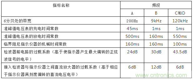 綜上所述,騷擾測量儀必須具有統一的中頻帶寬、檢波器充放電時間常數、電表機械時間常數和過載系數,這樣才能保證在測量同一脈沖信號時得到一致的結果。表2為GB/T6113.1規定的騷擾測量儀指標。其中各頻率段的范圍為: