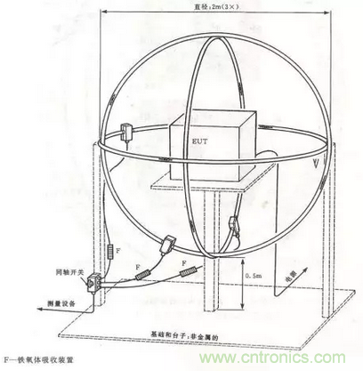 測試天線A的高度h應和EUT中心的高度相同,只要求h>1m,測試天線A也不需上下移動。但要求EUT在常規放置位置和90o翻轉位置上分別旋轉翻360o,以便尋找EUT的最大騷擾值。