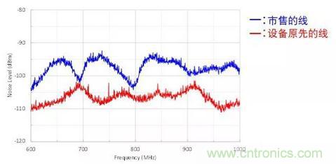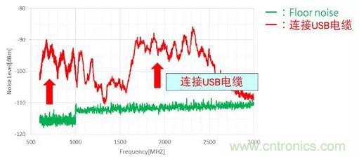 圖3:連接USB電纜前后進入天線的噪聲的對比