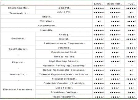 與其它集成技術(shù)相比,LTCC具有以下特點: