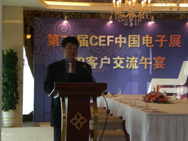 為答謝廣大電子廠商對中國電子展的長期支持,增進廠商了解和互信,中電會展于11月13日中午在永達大廈舉行交流午宴,邀請了包括美國福祿克、固緯電子、米尼帕電子、深圳帝光、武漢力源、威世、Analog Devices,中科泛華在內上百家企業的中高層領導,并邀請了高質量的買家客戶前來參加,其中包括富士康科技、日立顯示、LG中國采購中心等;深圳市中電網絡技術有限公司CEO 劉杰博士也受邀參加并發表演講,同來賓分享了對電子行業的未來趨勢發展的認識和看法。