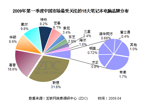 (圖) 2009年第一季度中國市場最受關注的15大筆記本電腦品牌分布