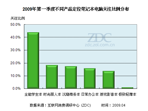 (圖) 2009年第一季度不同產品定位筆記本電腦關注比例分布