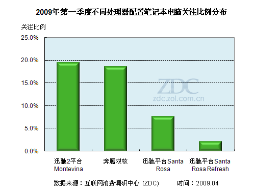 (圖) 2009年第一季度不同處理器配置筆記本電腦關注比例分布