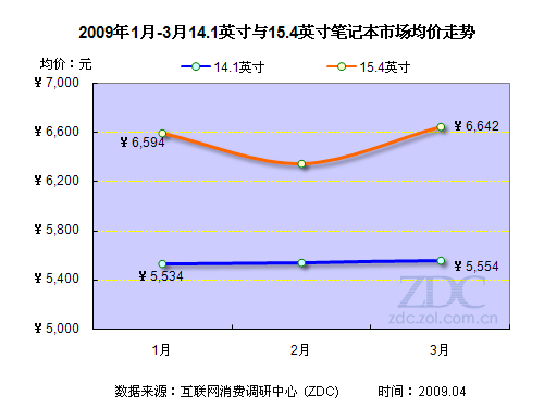 ZDC調查顯示,14.1英寸與15.4英寸產品是第一季度筆記本電腦市場的兩大主流機型,對市場價格變動的影響最大。