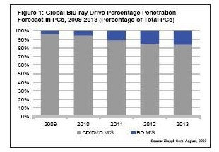 到2013年,當(dāng)年出貨的PC中將僅有16.3%裝備BD,高于2009年時(shí)的3.6%。