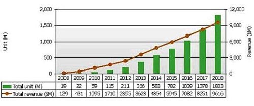 - E-Paper面板產值將由2009年的4億美元成長到2015年的60億美元;并將在2018年接近百億美元