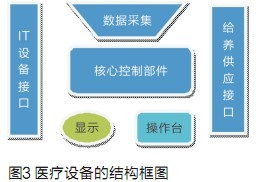 前面談了許多關于國內嵌入式企業在發展醫療電子產品上的優勢,但是,我們必須清醒地看到醫療電子產品(或者稱為有源的醫療設備)設計的特殊性。一般來講,醫療設備由下面幾個部分組成:電子控制部分、顯示和操作臺、給養供應和數據采集、以及其他設備接口(包括IT等),如圖3。每個部分都可能有獨立的MCU或者ASIC/FPGA,甚至是高性能的嵌入式計算機組成的多處理器系統。軟件研發的費用在現代醫療設備研發費用中所占的比重已經超過50%,未來還會增加。醫療設備的特殊性體現在下面幾個方面: