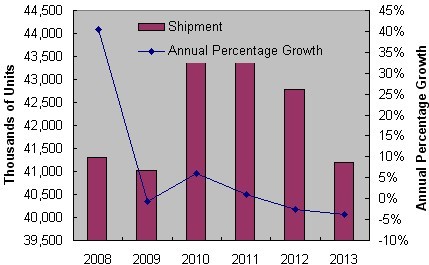 • 在未來四年內,全球銷售量預計將保持平穩,2013年預計為4,120萬個,幾乎與2008年持平