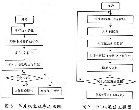 任意時刻太陽的位置可以用太陽視位置精確表示。太陽視位置用太陽高度角和太陽方位角兩個角度作為坐標表示。太陽高度角指從太陽中心直射到當地的光線與當地水平面的夾角。太陽方位角即太陽所在的方位,指太陽光線在地平面上的投影與當地子午線的夾角,可近似地看作是豎立在地面上的直線在陽光下的陰影與正南方的夾角。系統采用水平方位步進電機和俯仰方向步進電機來追蹤太陽的方位角和高度角,從而可以實時精確追蹤太陽的位置。上位機負責任意時刻太陽高度角和方位角的計算,并運用軟件計算出當前狀況下俯仰與水平方向的步進電動機運行的步數,將數據送給跟蹤系統驅動器,單片機接收上位機送來的數據,驅動步進電機的運行。系統具有實現復位、水平方位的調整,俯仰方向的調整,太陽的跟蹤及手動校準等功能。[page]