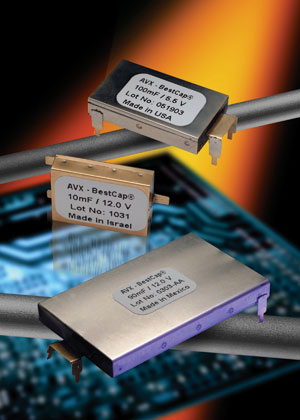 脈沖超級電容器的封裝也在不斷發(fā)展,主要朝向小占板面積和低高度方向。例如,AVX的BestCap®系列超級電容器大約8年前就面市了,包括了具有標準28mm×17mm尺寸和48mm×30mm大尺寸的型號,厚度范圍是2.0mm~6.0mm。目前,已經(jīng)開發(fā)出了小尺寸(20mm×15mm)的型號,更加微小尺寸(15mm×12mm)的型號也正在開發(fā)中(見圖1)。這些超級電容的結構是非常堅固的,具有精密鋼質(zhì)外殼。所有內(nèi)部單元部件都采用環(huán)保材料、無有機溶劑的水溶性材料制造,這些相同的單元部件會構成單元陣列。由于采用實體封裝和相同的結構,可以承受超過1000g的重力加速度沖擊,而且這些內(nèi)部單元的工作溫度范圍是-40~+75℃。